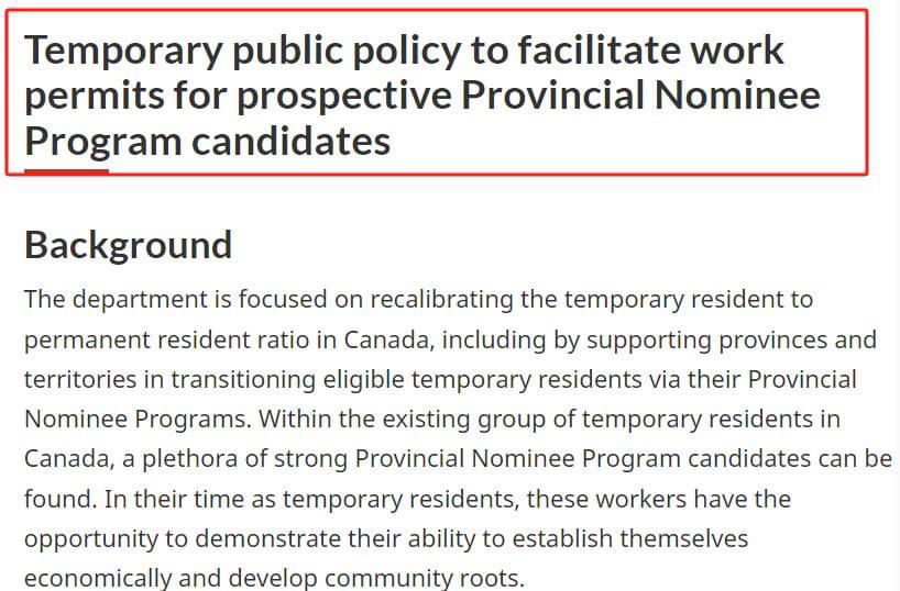 Temporary public policy to facilitate workpermits for prospective Provincial NomineeProgram candidates